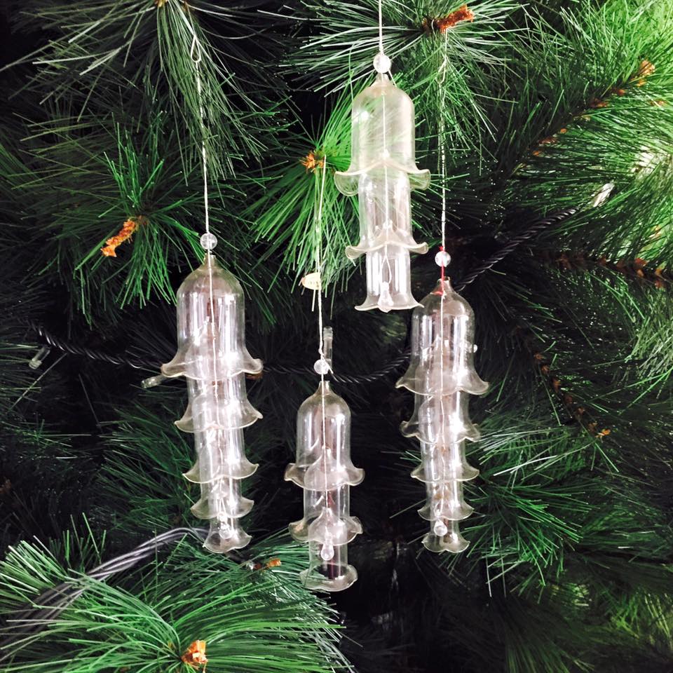 隨後掛球形吊飾。當時家裡那些吊飾,猜想應是鍍銀的玻璃製品,非常易碎,而且打破之後十分割手。當時的熱水保溫瓶內膽就是鍍銀的玻璃材質,且是未經強化的玻璃。這些精緻輕巧的銀色鏡面吊飾,上有各式雪花意象的白色花紋。如此嬌貴又有些危險的飾品,多由父親親手掛上。