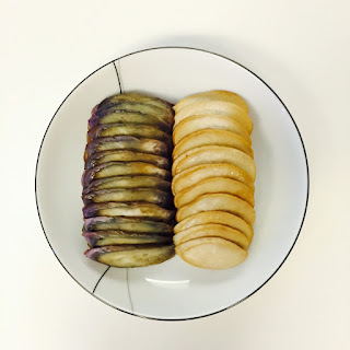 閨友 Tracy 不吃奶類產品,而羊肚菌醬汁、松茸醬汁都有 butter。上次特別為她備了另一種醬料,材料是其他菜餚的邊邊角角,包括紅色甜椒、黃色甜椒、綠色節瓜、黃色節瓜、洋蔥、茄子,以多種香草調味。是的,基本上就是 ratatouille 的食材,只是切得細碎一些。結果,大家愛極了。所以今年不但要再做,還要加量。